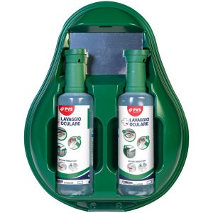 DROP Stazione Lavaggio Oculare di Emergenza Pronto Soccorso PVS First Aid in KIT Lavaocchi Completo con 2 Flaconi di Fisiologica Sterile Monouso 500ml Pronto Intervento articolo CPS202