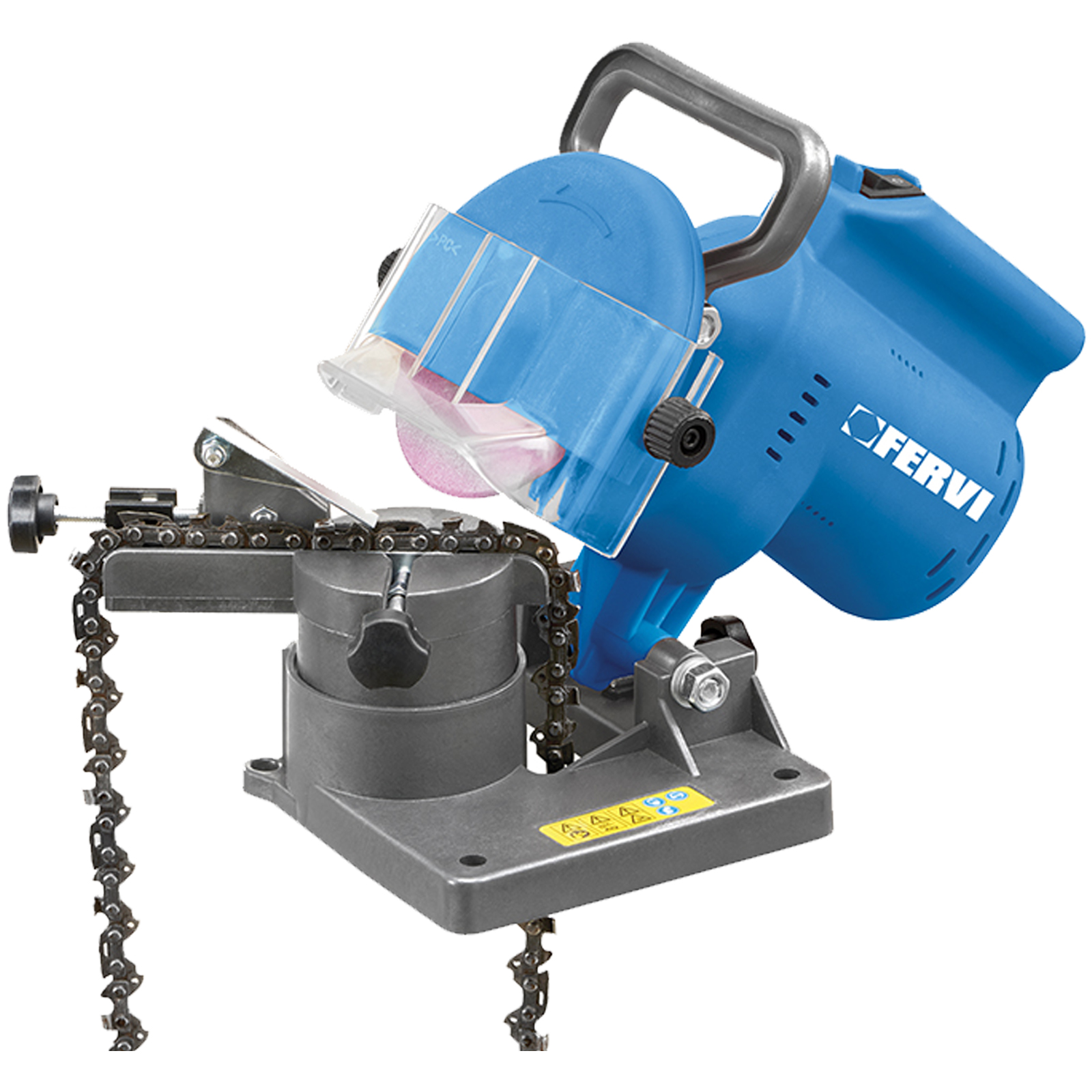 La catena da affilare deve essere posizionata in un apposito scomparto e ruotando la manopola laterale in posizione chiusa per tenerla bloccata.