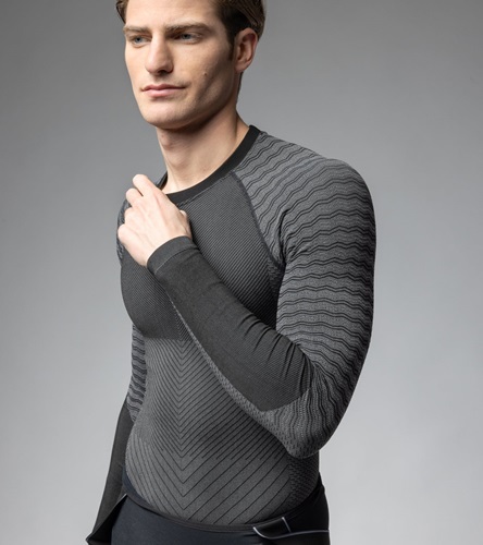 Maglia primo strato in filato tecnico tubolare di polipropilene DRYARN con struttura variabile per favorire la coibenza termica nelle stagioni mediamente fredde. Progettata per offrire libertà di movimento e una straordinaria sensazione di comfort a chi la indossa.