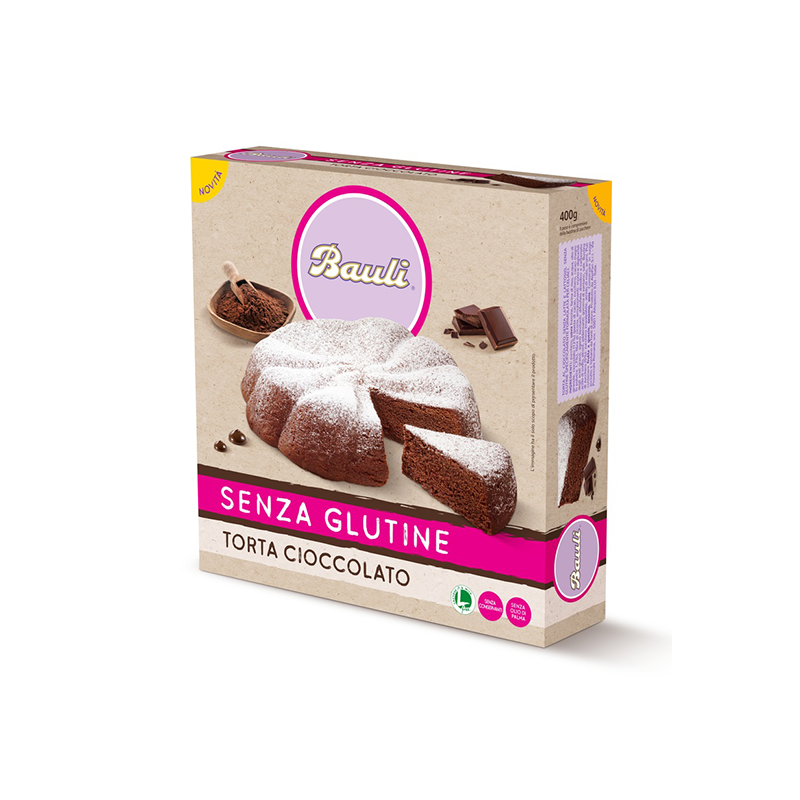 Torta al cioccolato senza glutine specificamente formulata per celiaci.