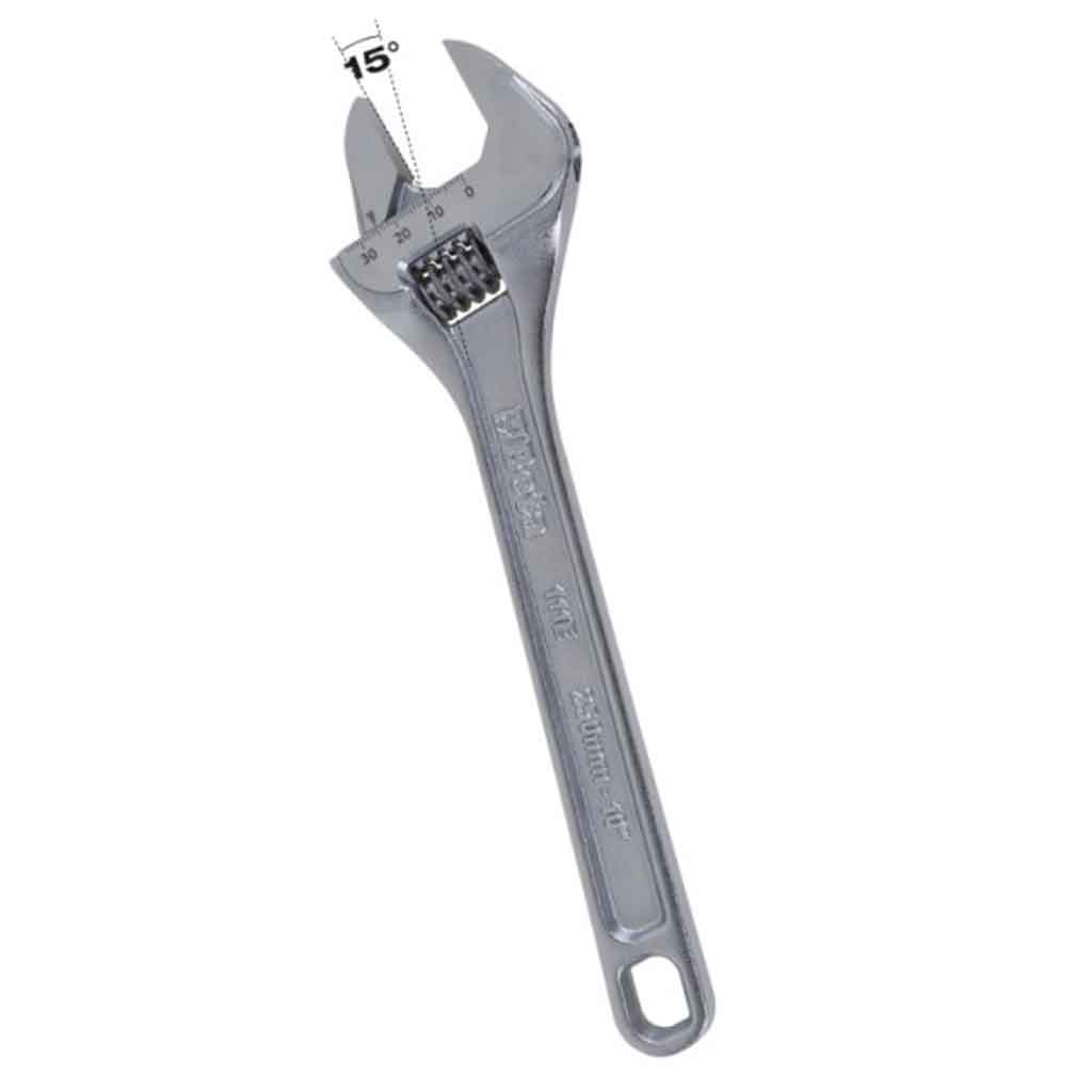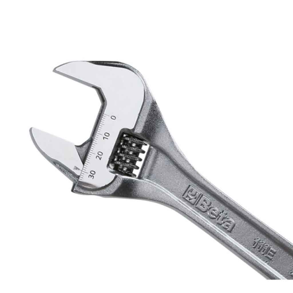 La chiave a rullino Beta 111E consente di avvitare e svitare dadi e bulloni di diverse dimensioni grazie alla ganascia regolabile tramite rullino con rotazione destrorsa. L’apertura della chiave è maggiorata con un’ingombro ridotto della testa a ganascia completamente aperta. La doppia marcatura al laser in mm/pollici per è studiata per regolazioni accurate con teste cromate satinate per una migliore lettura della scala. La sua struttura ha un’ottima resistenza all’usura e alle torsioni meccaniche grazie all’impiego di acciaio legato e trattamenti termici dedicati. L’impugnatura ampia per un maggior comfort durante l’utilizzo e il foro su l’impugnatura per appendere le chiavi. Conforme alla norma DIN 3117 – ISO 6787.
