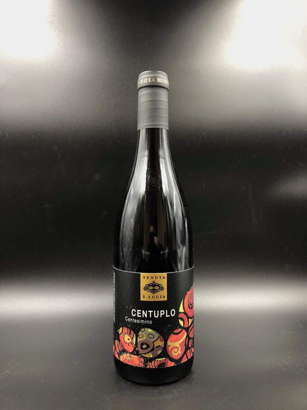 Il Centesimino “Centuplo” di Tenuta di Santa Lucia è un vino molto caratteristico, unico nel suo genere, con sfumature floreali e un’aromaticità tutta sua. L’unico paragone che si può fare, nel panorama vitivinicolo italiano è con l’aromaticità del Lacrima di Morro d’Alba. Questo vino è ottenuto da un’accurata selezione delle uve sia sulla pianta sia in cantina; fermentazione spontanea in acciaio con lieviti indigeni; lunga macerazione sulle bucce a temperatura controllata in acciaio è affinamento negli stessi contenitori per 12 mesi. Rosso rubino intenso ed impenetrabile con riflessi violacei. Al naso presenta aromi fini di rosa canina e spezie. Il palato conferma il quadro olfattivo: vellutato e persistente con una piacevole e sottilissima trama di tannino in evoluzione.