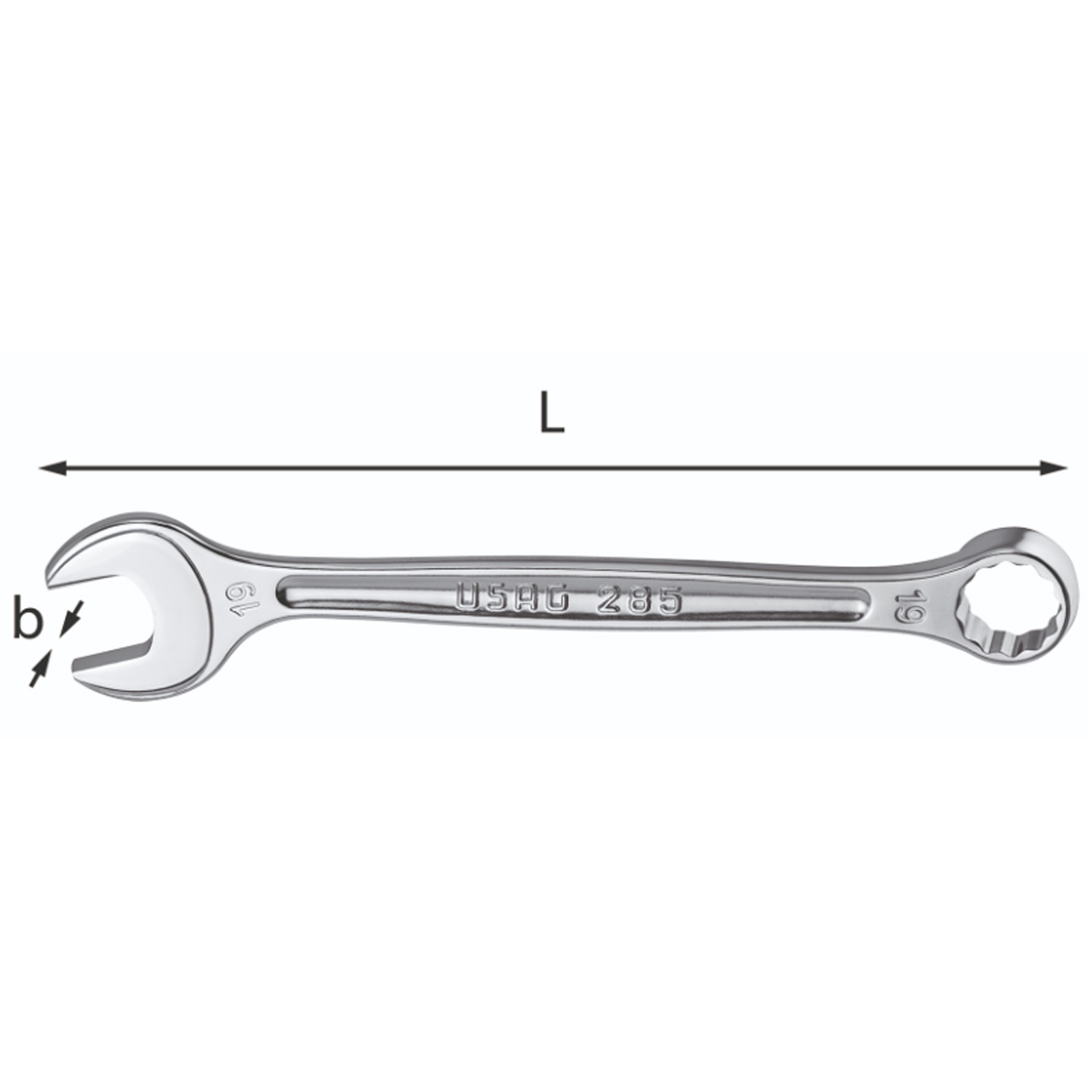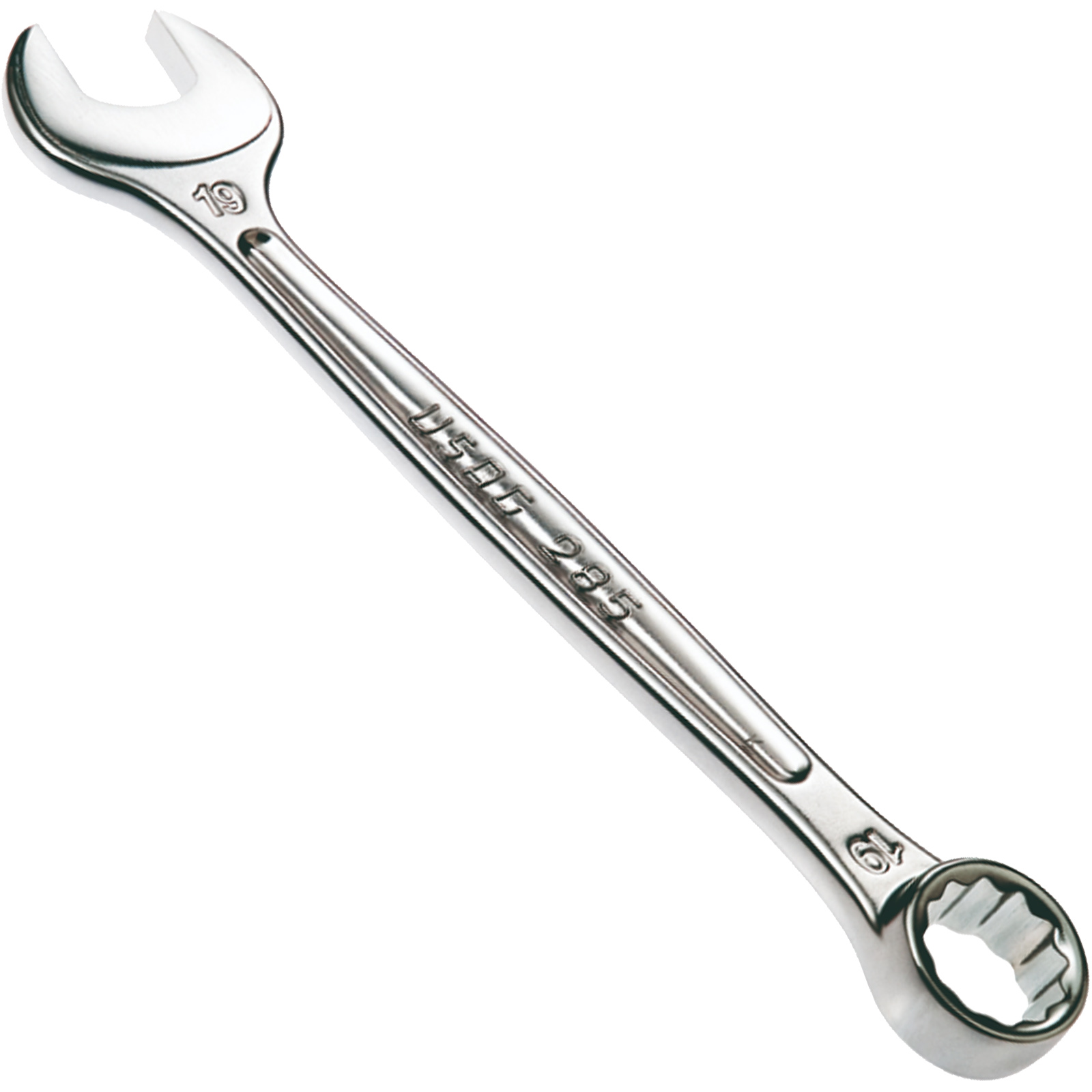 Chiavi combinate in acciaio al cromo vanadio con forchetta ribassata inclinata di 15° e testa poligonale disassata e piegata di 15°.