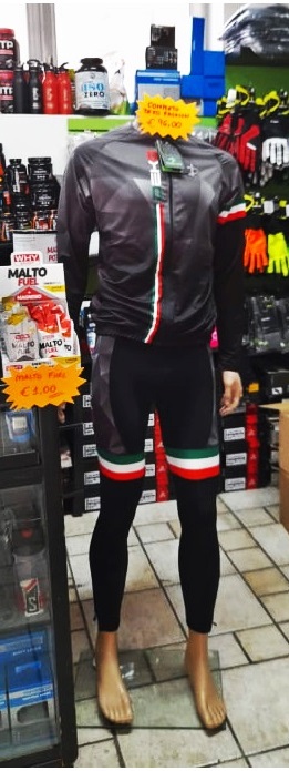 Provvista di zip lunga frontale e tre tasche posteriori di cui una dotata di zip.
