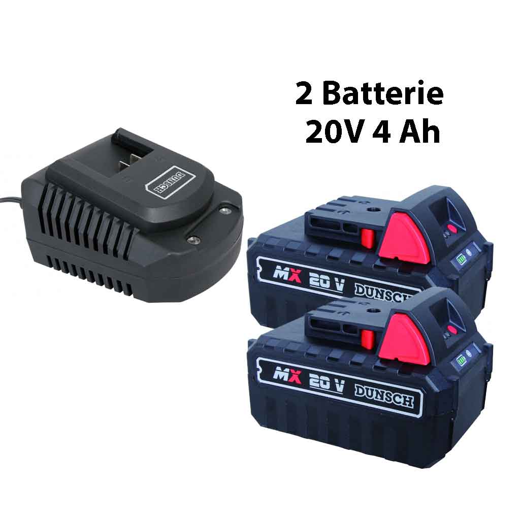 Il tagliaerba Dunsch DU10040-40BE 40V 400mm include N.2 Batterie 20V 4Ah, Carica batteria singolo, lama 40 cm e sacco di raccolta da 45 litri.