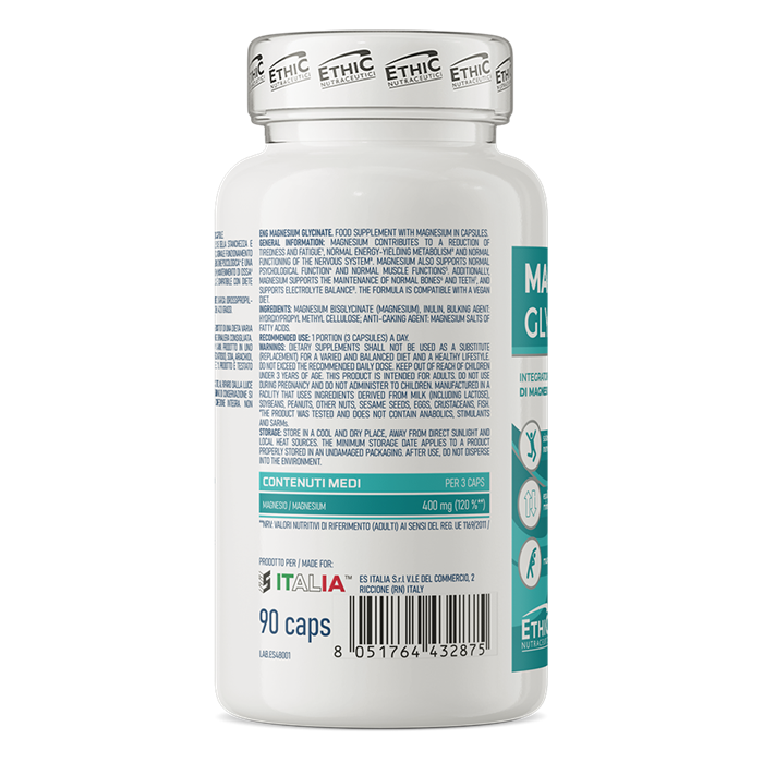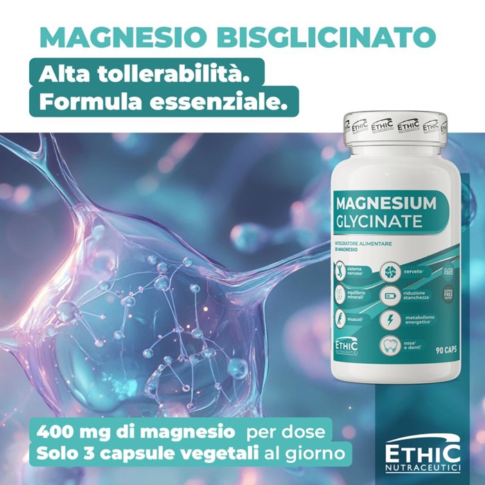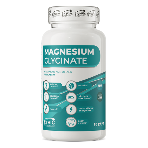 MAGNESIUM GLYCINATE® è un integratore alimentare in capsule vegetali a base di magnesio bisglicinato, una forma organica ottenuta attraverso l’unione del magnesio con l’amminoacido glicina.