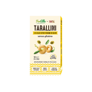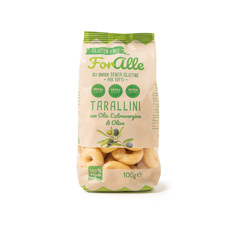 Snack salato senza glutine specificamente formulato per celiaci con olio extravergine d’oliva.