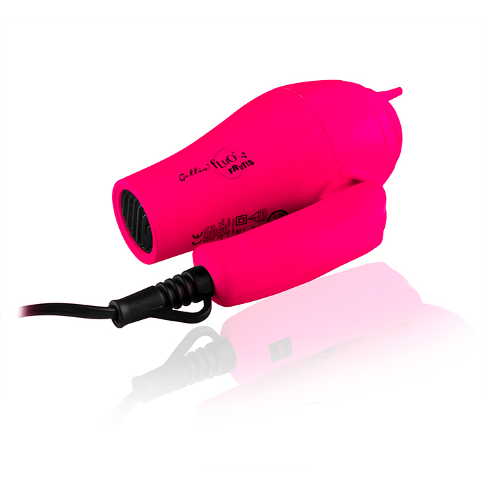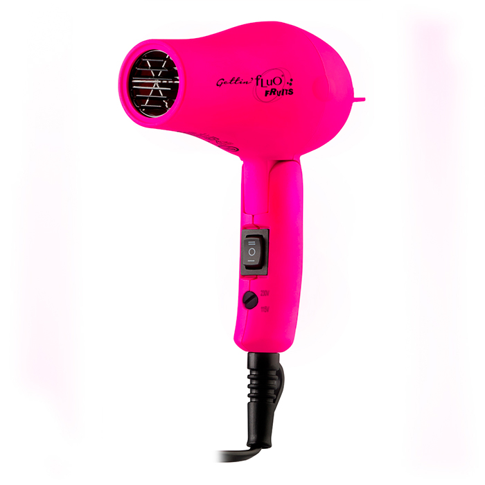 Gettin Fluo Mini Phon Da Viaggio Fruits Strawberry pratico e compatto: piccolo, anz ipiccolissimo, ma potenti quanto un asciugacapelli tradizionale. Pieghevole, misura solo 14x9cm quando chiuso: ideali da portare in viaggio o in palestra.
