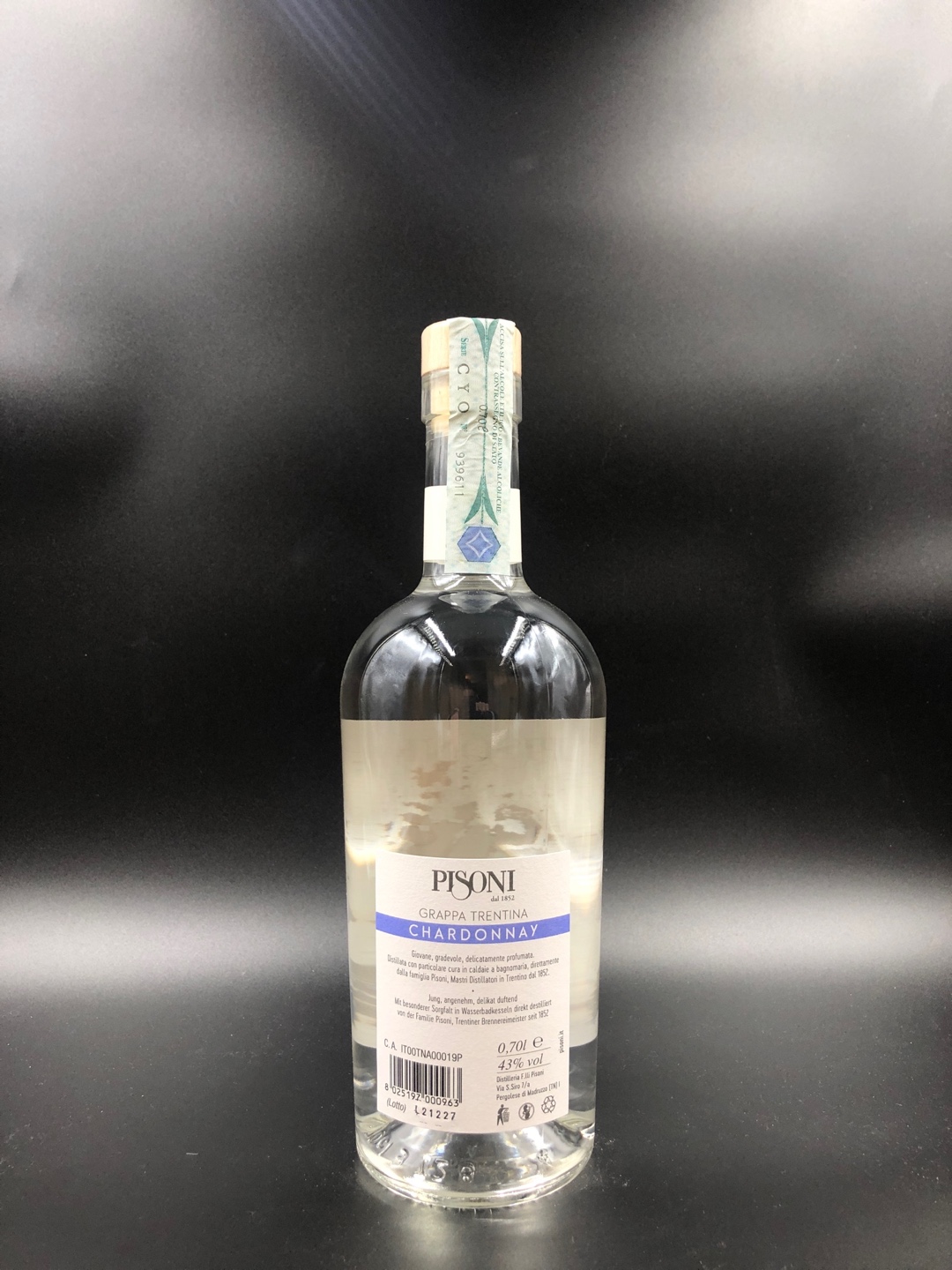 Giovane e gradevole, delicatamente profumata. Dalla vinaccia di uva Chardonnay, la più coltivata in Trentino, da cui si ottiene anche lo Spumante Pisoni Brut, nasce questa Grappa prestigiosa. Distillata con particolare cura in caldaie a bagnomaria direttamente dalla famiglia Pisoni, Mastri Distillatori in Trentino dal 1852.