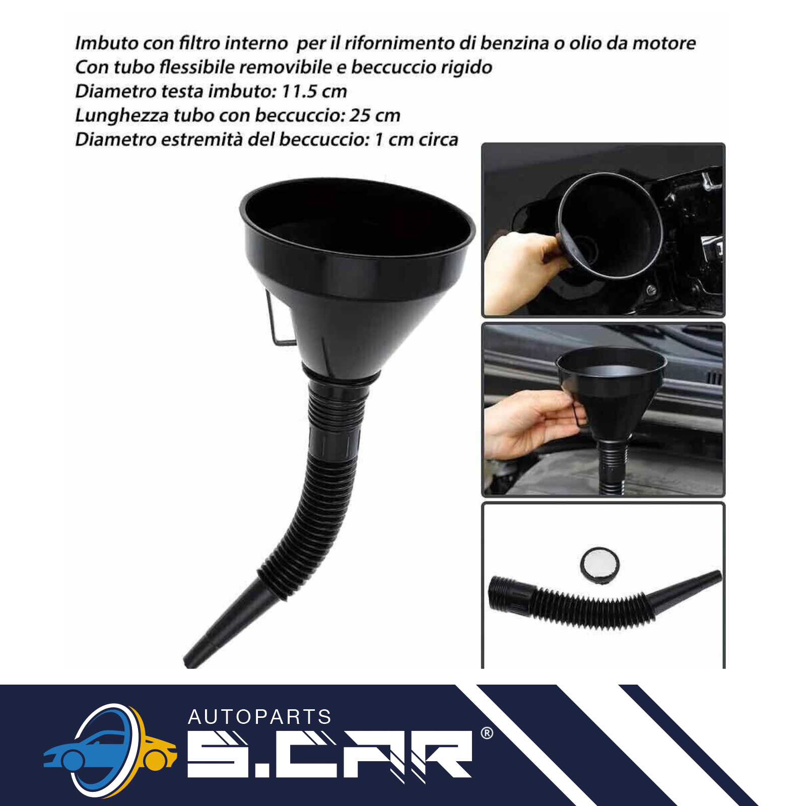 Imbuto Flessibile adatto per travasare olio, acqua, carburante o tutti i liquidi. Per garantire cje non passi anche sporcizia o polvere, è dotato di un filtro.Prolunga asportabile.Materiale resistente e di altà qualità