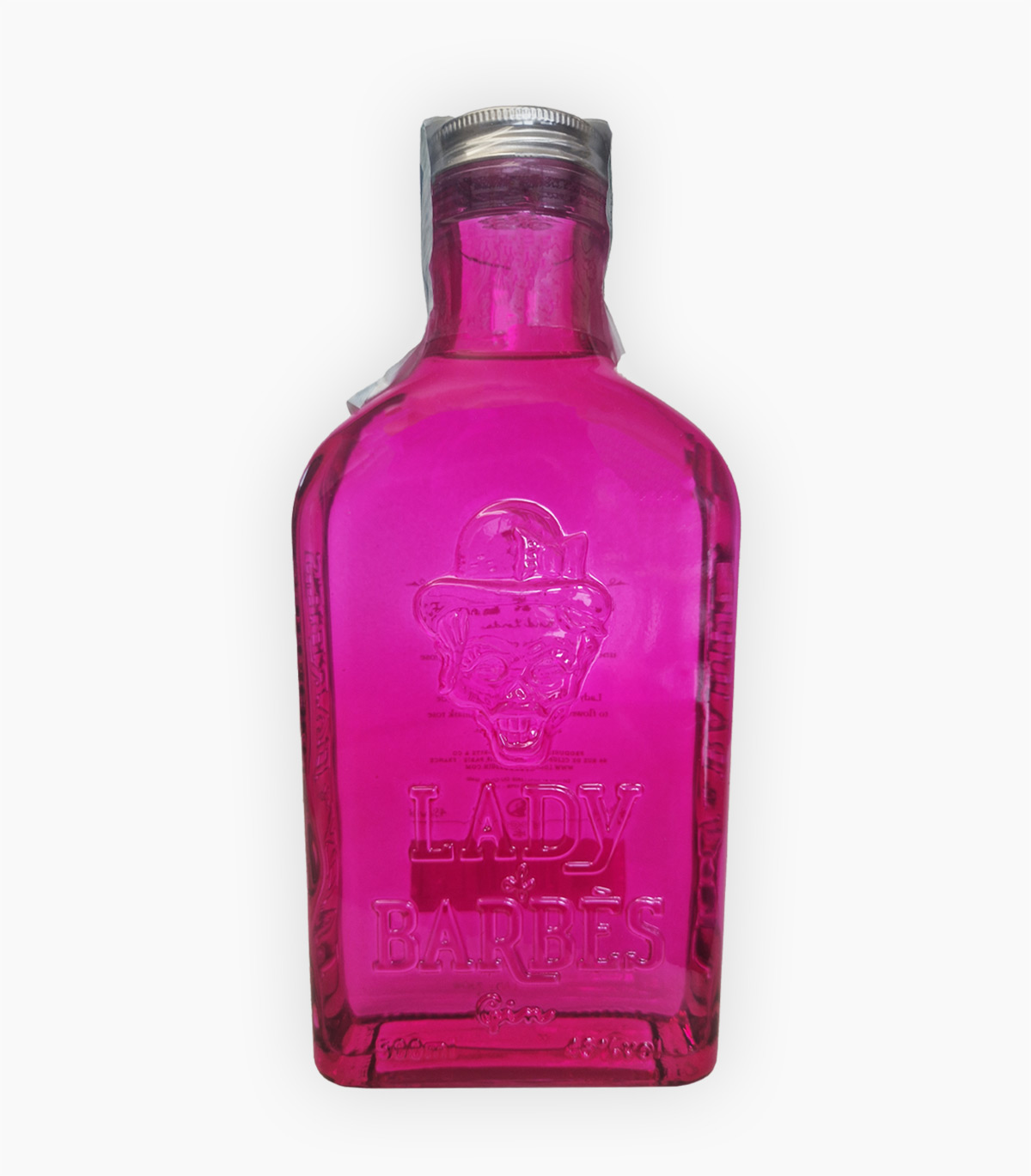 La bottiglia del Gin Lady of Barbès riprende vagamente il modello delle bottiglie da farmacia ed il color fucsia del vetro è stato scelto per proteggerne il contenuto dalla luce del sole.