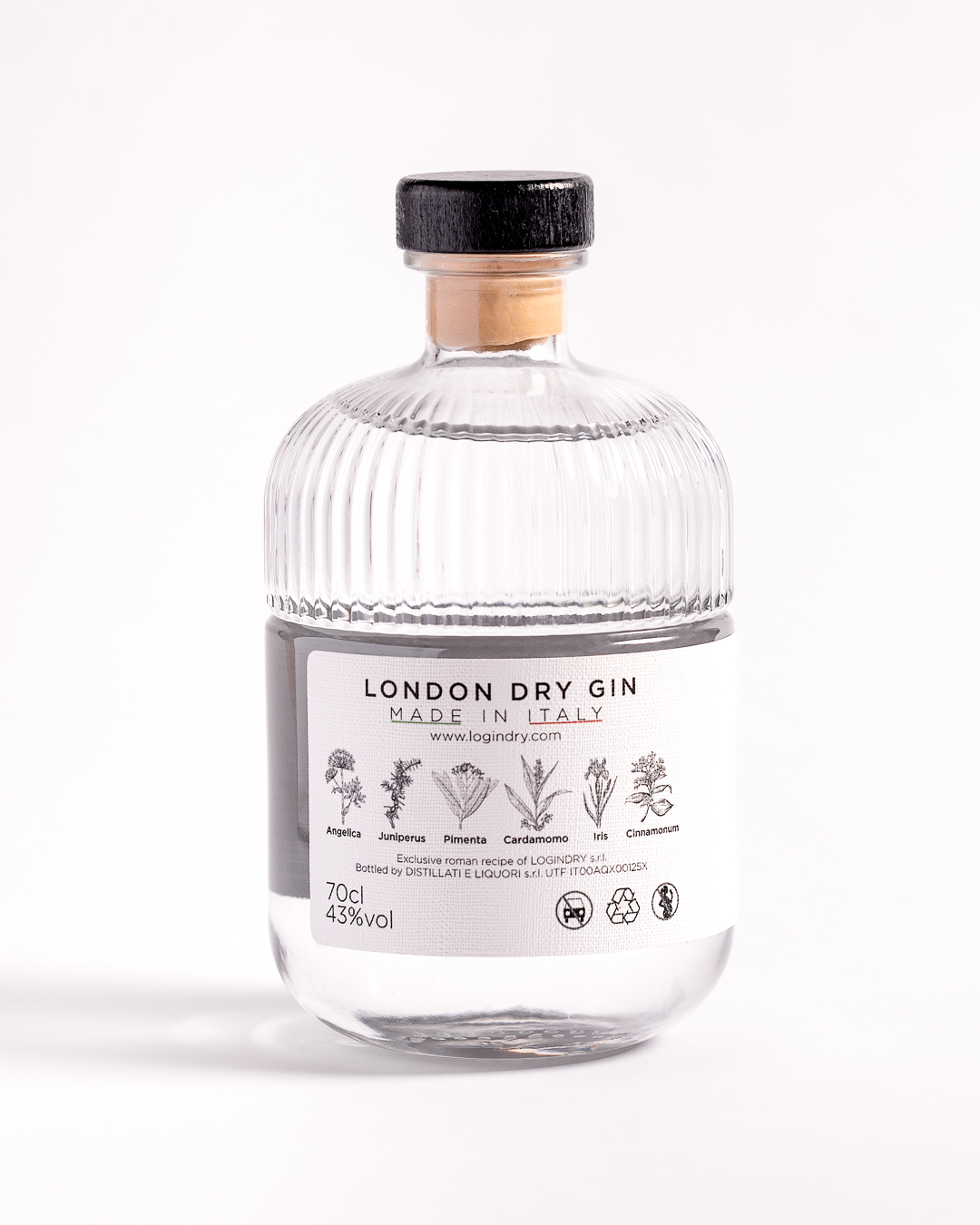 Premium London Dry Gin nato a Roma (Italia), ottenuto dalla infusione di 6 botaniche.