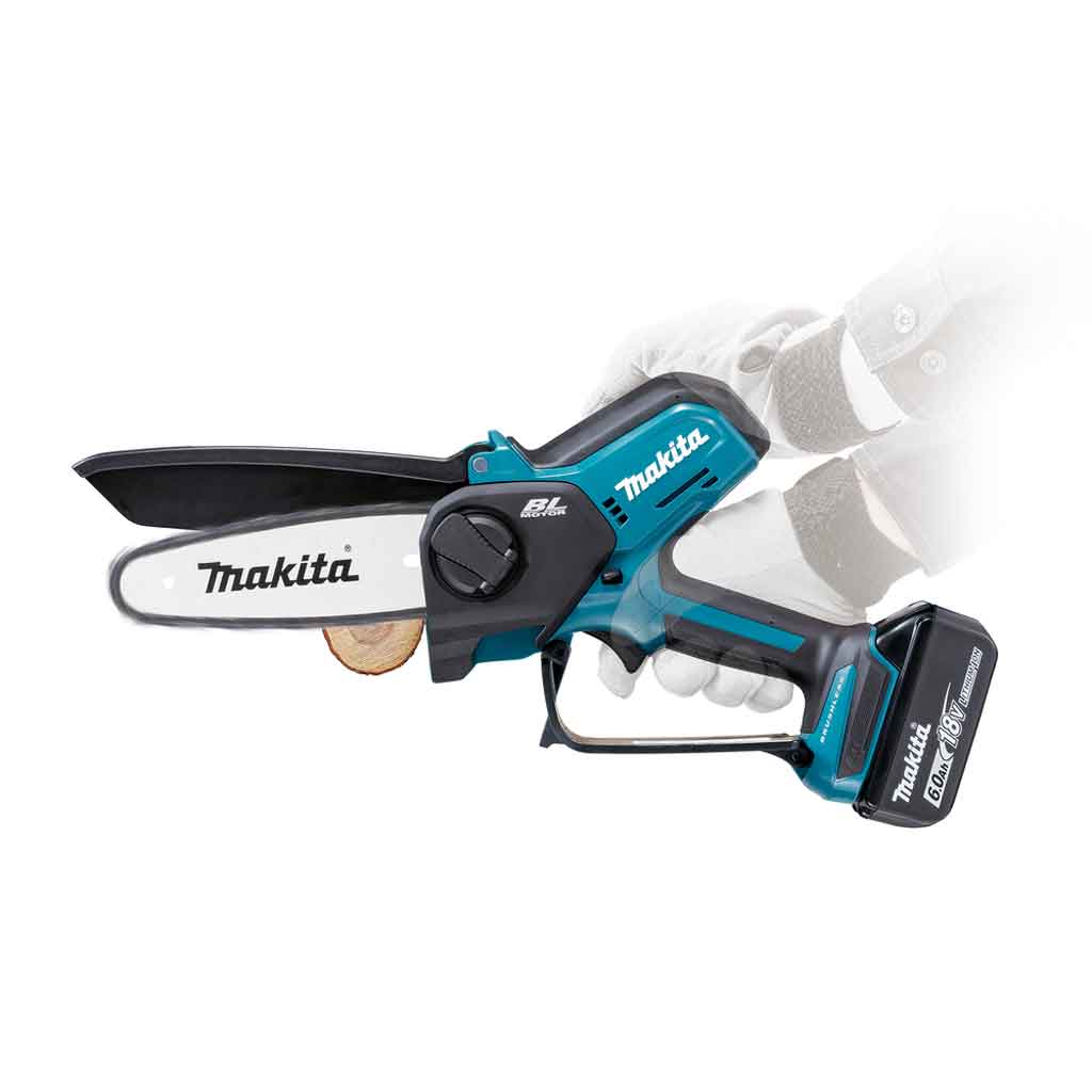 Il potatore a catena Makita DUC150ZJ è un elettroutensile a batteria 18V compatto e versatile con barra con catena da 15cm , ideale per eseguire operazioni di taglio di assi e potatura. Progettato con potente motore Brushless ad alte performance permette di erogare una velocità della catena pari a 8,0 metri al secondo.