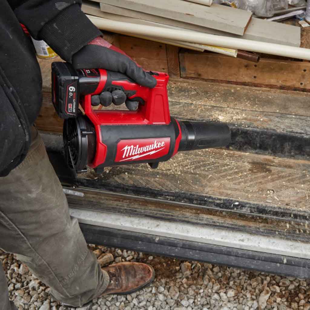 Il soffiatore compatto 12V Milwaukee M12 BBL-0 è composto da un potente motore che offrein grado di generare fino a 4.81 m³/min di volume d’aria a 177 km/h, per pulizia veloce ed efficiente del luogo di lavoro. Grazie alla possibilità di regolare la velocità del motore, oltre che all’interruttore con dispositivo di blocco, il suo design leggero e compatto lo rende versatile per lo sporco e i detriti negli spazi più stretti .