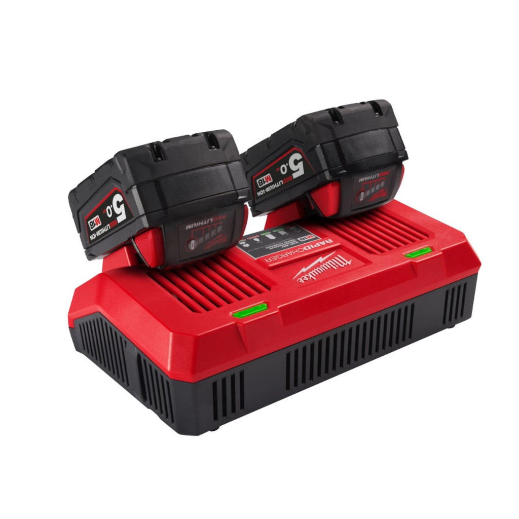 Il Caricabatterie rapido Milwaukee M18 DFC è in grado di ricaricare simultaneamente due batterie simultaneamente, fino a 3 volte più velocemente rispetto al caricabatterie standard M12-18 C, massimizzando la produttività. Grazie all’elettronica REDLINK il caricabatterie comunica con il pacco batteria per garantire velocità di carica e prestazioni ottimizzate assicurando alte performance per aumentare la vita utile. Possibilità di montaggio a parete.