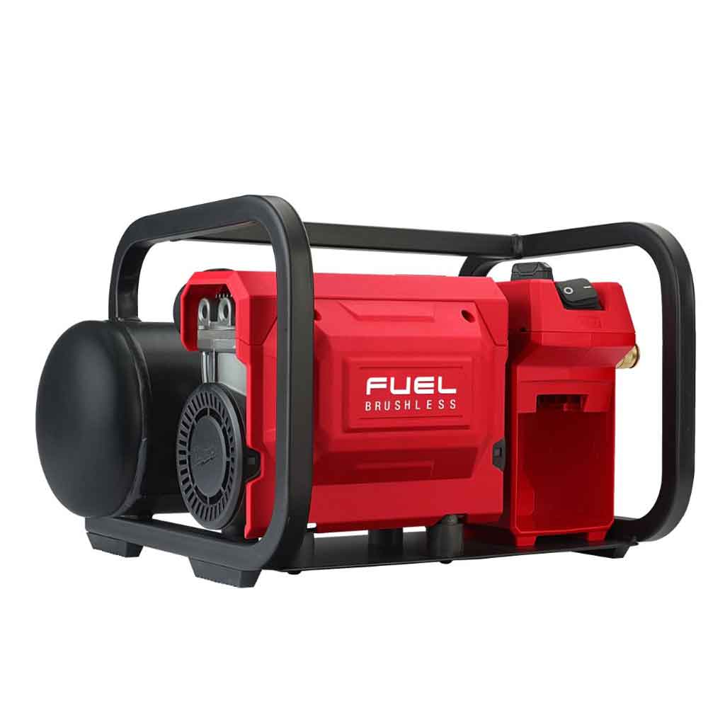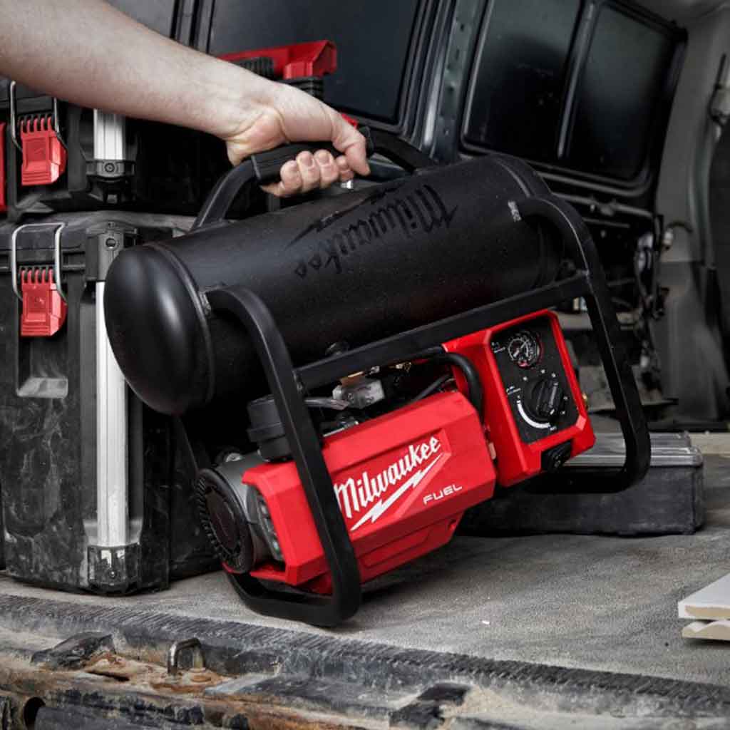 Il compressore Milwaukee M18 FAC-0 è estremamente silenzioso, con solo 68 dB. Dotato di motore brushless in grado di erogare pressione massima di 9,31 bar e 48 l/m a 2.8 bar, fornendo prestazioni tali da essere usato con groppinatrici e graffatrici comuni.