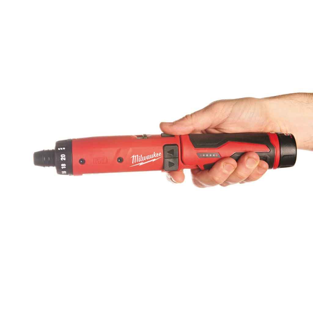 L’avvitatore in linea Milwaukee M4 D-202B è un cacciavite elettrico compatto da 244 mm con Mandrino attacco ¼” esagonale e 2 velocità per per avvitare e forare. La frizione è estremamente accurata del 8% con 2 Posizioni di impugnatura per una maggiore versatilità. Indicatore stato di carica della batteria.