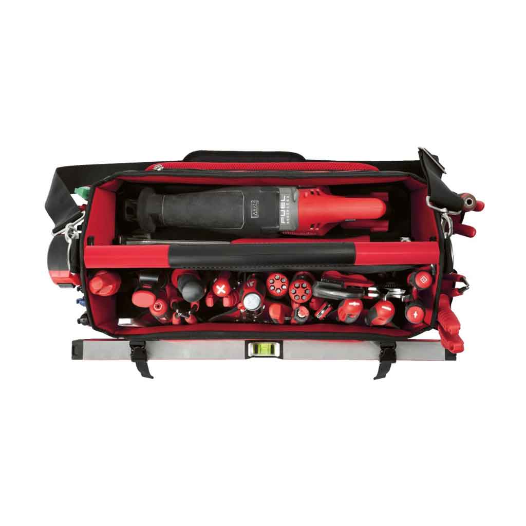 La borsa porta utensili aperta Milwaukee PACKOUT 50CM TOTE TOOLBAG ha una massima resistenza grazie al Nylon balistico 1680D e la scocca di rinforzo in metallo. La stratificazione dei tessuti con bordi rinforzati, anelli e molle in metallo ne aumenta la durata e le prestazioni. La borsa PACKOUT 50CM TOTE TOOLBAG è composta da 32 tasche per organizzare al meglio gli utensili con tracolla, maniglia ergonomica per il trasporto e base stampata resistente agli urti. Milwaukee PACKOUT 50CM TOTE TOOLBAG fa parte del sistema di stoccaggio modulare PACKOUT™ con base Packout che protegge dall’umidità e detriti.