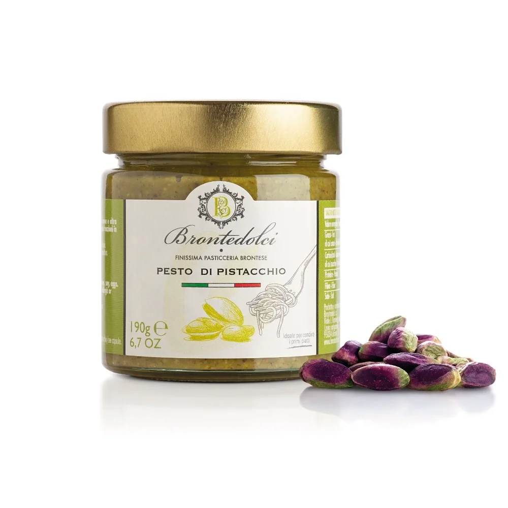 Preparato con il 55% di pistacchi di prima qualità, sapore unico e inconfondibile. Potete sbizzarirvi in cucina col nostro pesto, infatti, si presta benissimo a molteplici ricette: come condimento per la pasta, per la pizza, il pesce, la carne, gli antipasti.