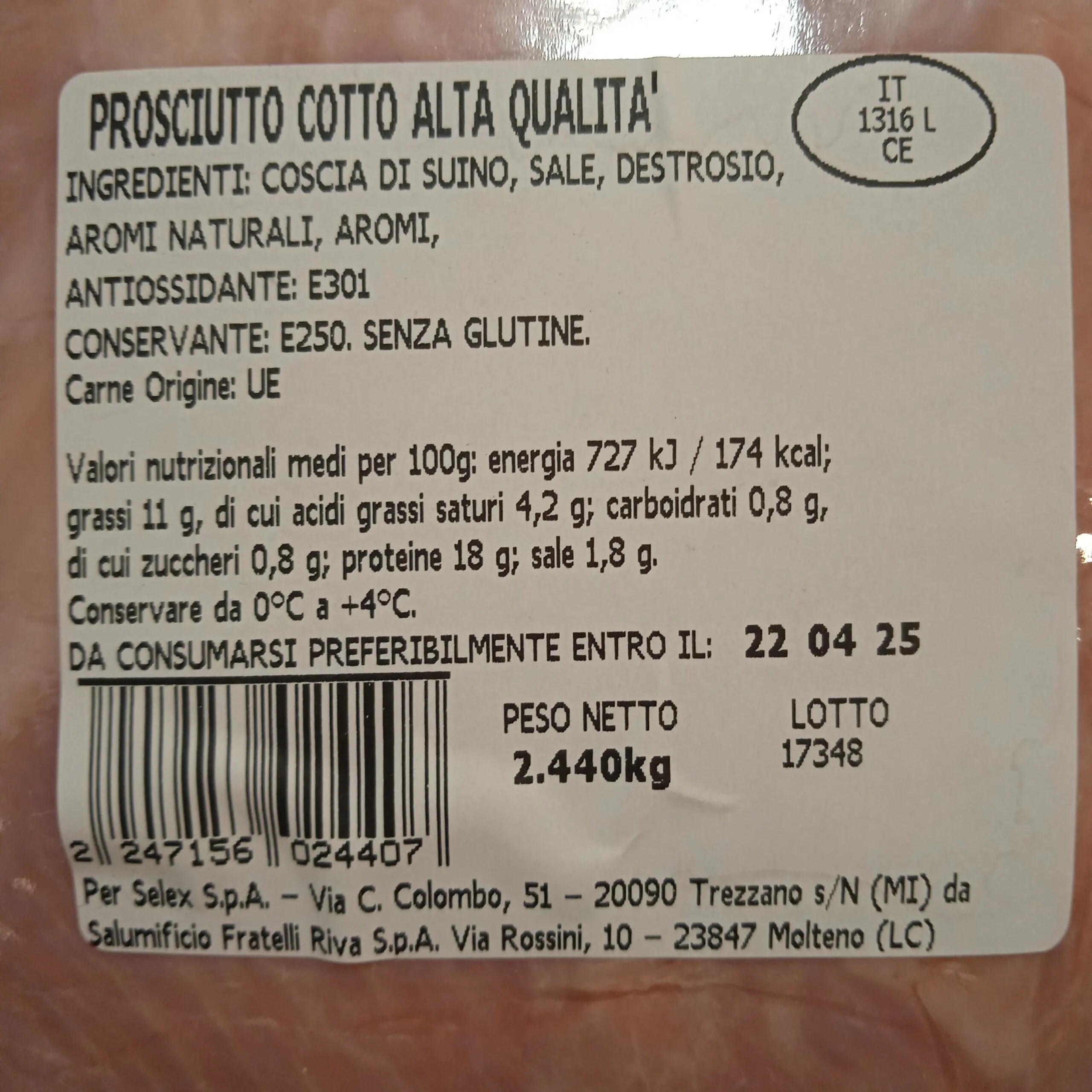 Prosciutto Cotto Alta Qualità SÙ 2kg c.a.
