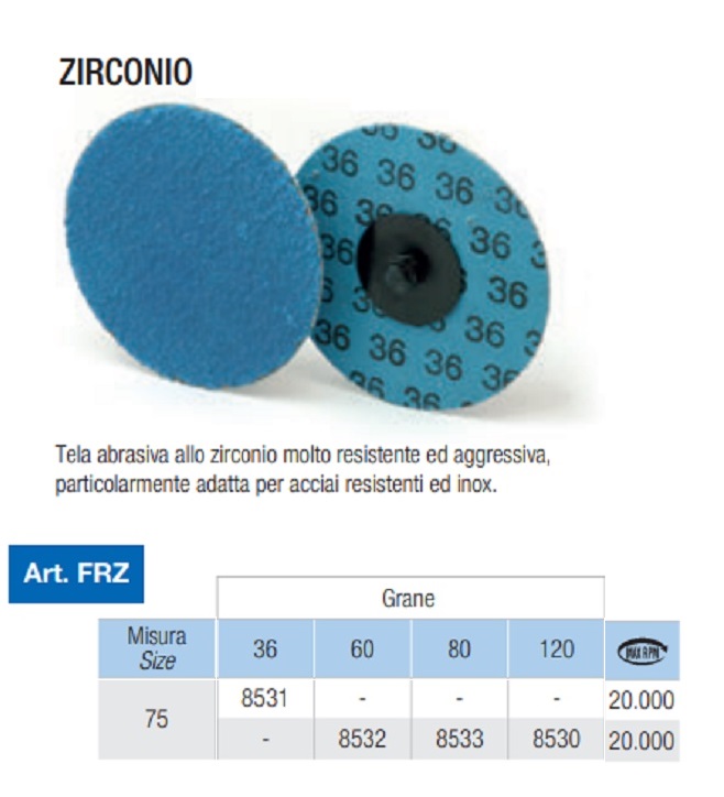 Dischi a fissaggio rapido allo zirconio molto resistente ed aggressiva, particolarmente adatta per acciai resistenti ed inox.