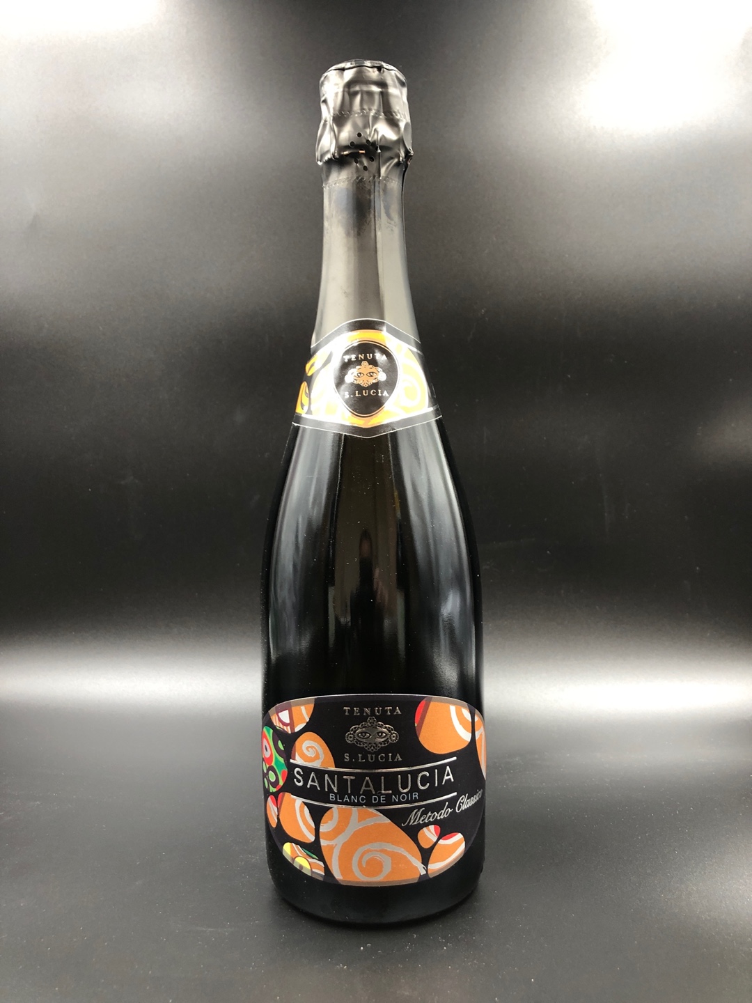 Lo spumante metodo classico Blanc de Noir di Tenuta di Santa Lucia è uno spumante molto interessante, in quanto è raro poter assaggiare bollicine da uve Sangiovese. Seguendo i principi dell’agricoltura biologica e biodinamica, la fermentazione del vino base avviene spontaneamente in acciaio e poi, per la rifermentazione in bottiglia, si aggiunge del mosto dello stesso vino, carico già di zuccheri e di lieviti. Il vino rimane in bottiglia sui lieviti almeno 36 mesi e poi, dopo la sboccatura, si aggiunge di nuovo un po’ di vino, per arrivare al dosaggio extra brut. Alla vista si presenta giallo-rosa luminoso, con note di frutti e fiori rossi, seguite da lievi sensazioni minerali e tipici sentori di pane. L’assaggio si rivela fresco e fruttato, con sorso vibrante, sapido e persistente.