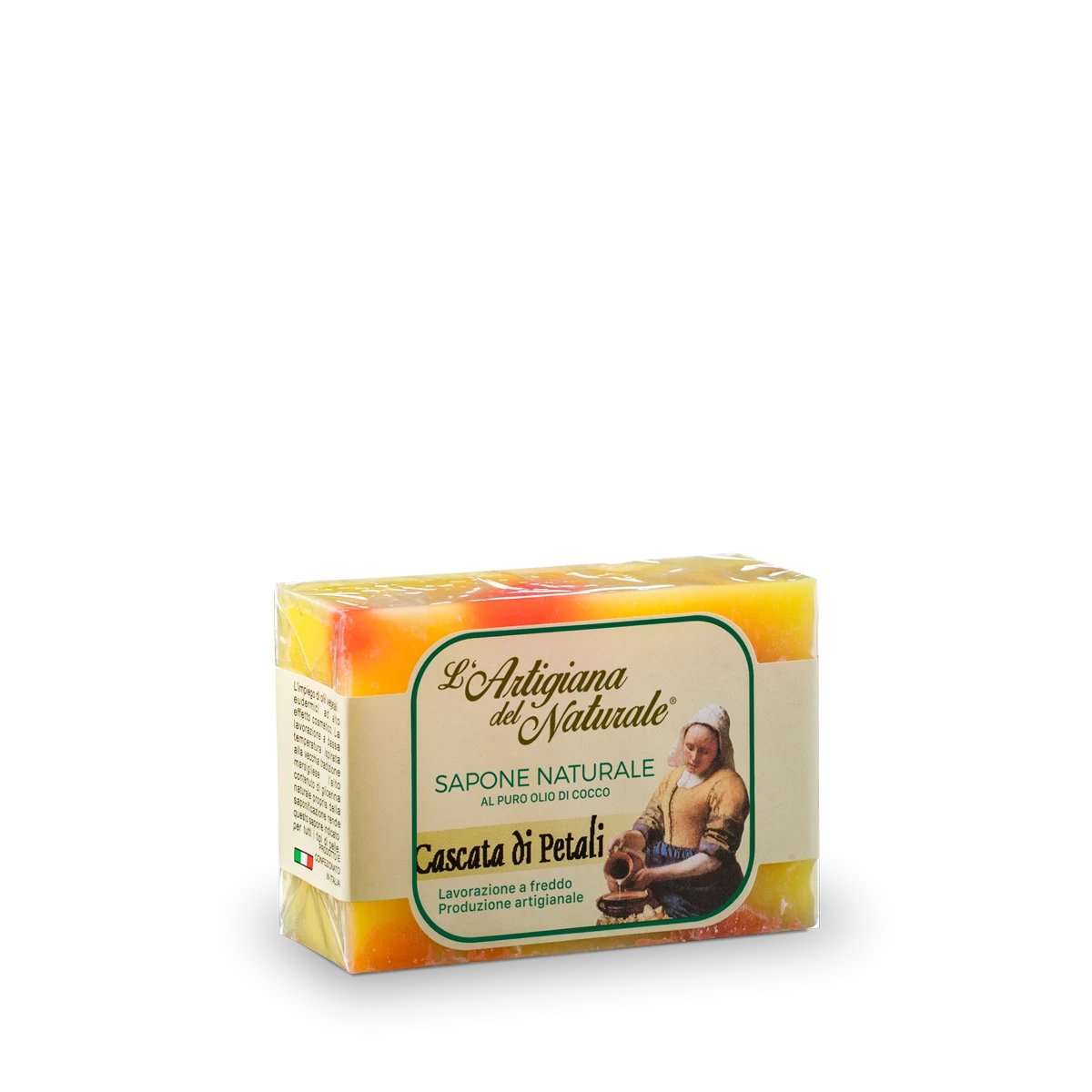 Sapone artigianale a base di olio di cocco dalla fragranza floreale.