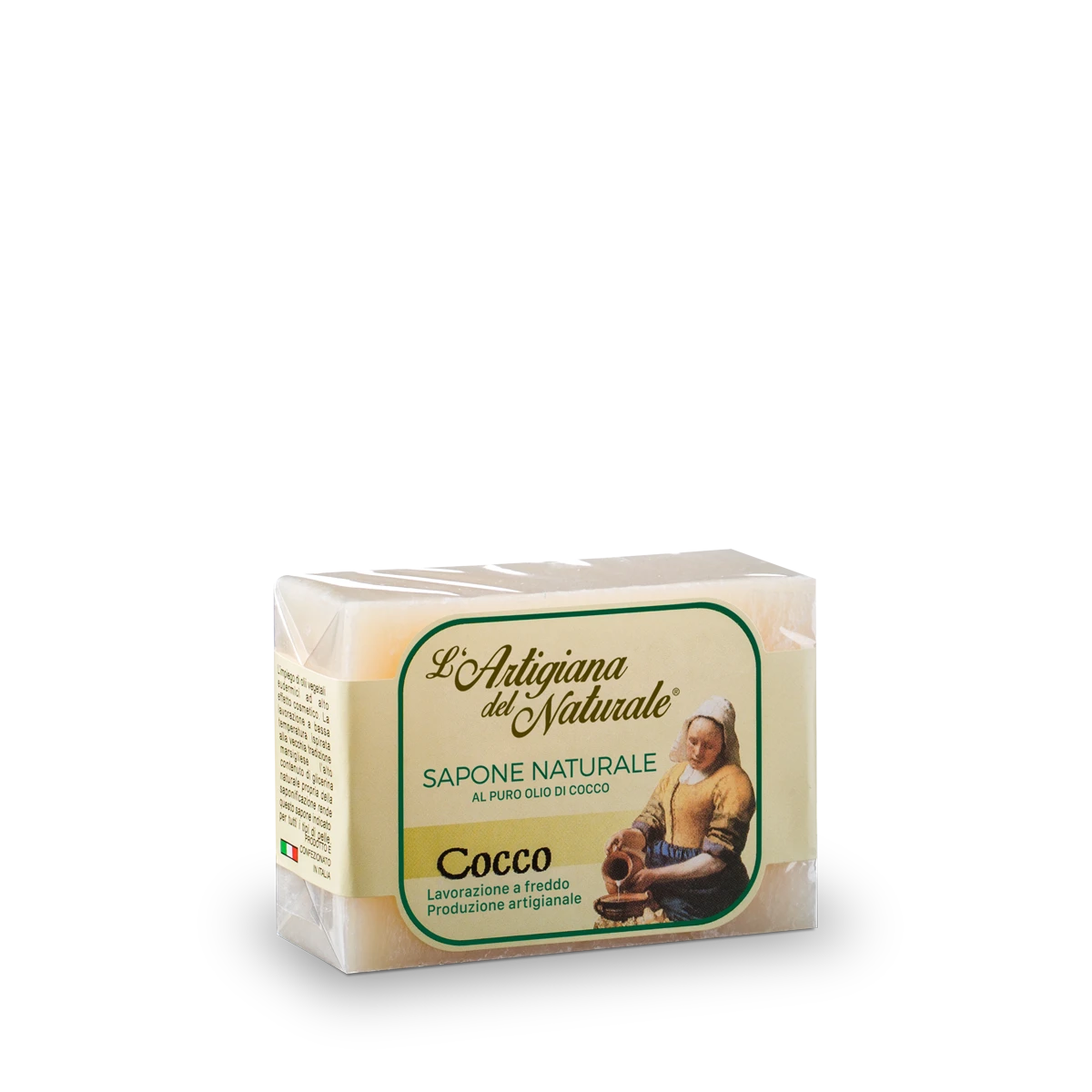 Sapone artigianale a base di olio di cocco con fragranza di cocco.