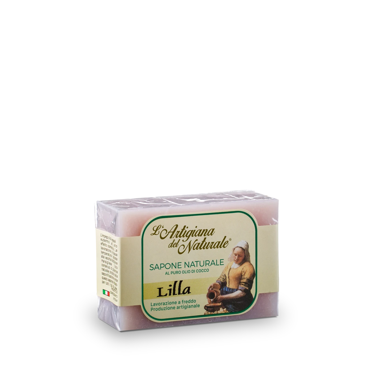 Sapone artigianale a base di olio di cocco con fragranza di lillà.