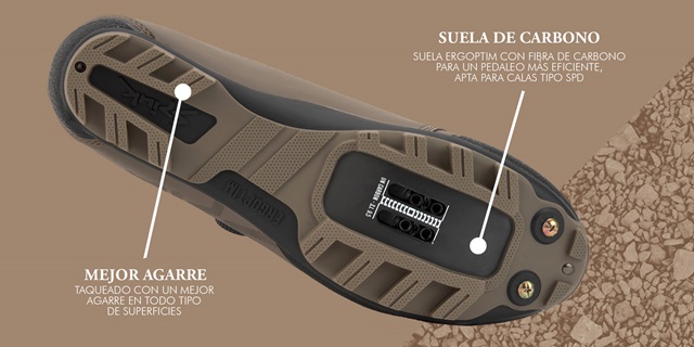 - Suola Ergoptim con fibra di carbonio per una pedalata più efficiente, adatta per tacchette di tipo SPD